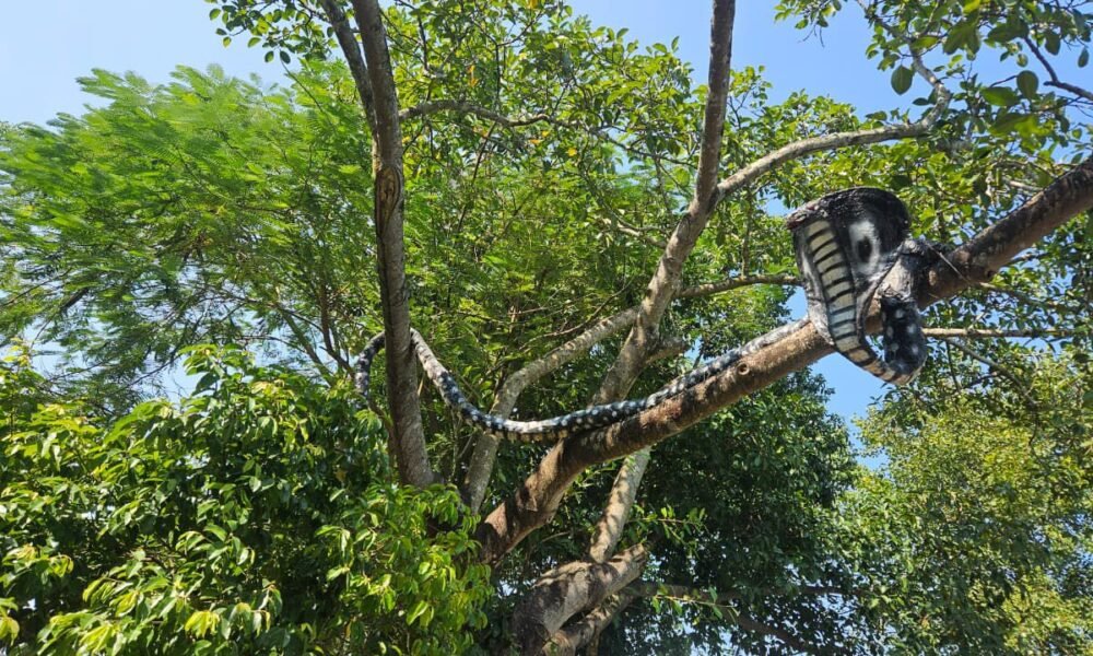 A 7-foot-long python created a stir among locals at the Nityananda area in Bajali district being safely rescued by the Pathsala Forest Department. The snake was...